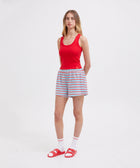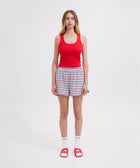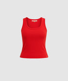 Simple yet essential, your go to summer tank. Cut from a ribbed cotton blend fabrication, the fitted silhouette molds to the body. Designed with a rounded scoop neck and finished with a HolidayShop tab at the hem. Available in white, black and red.