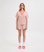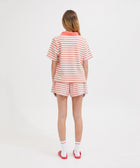 A fun, bold polo top cut from a cotton-blend terry fabrication. The coral and white striped pattern has been contrasted with the ribbed coral collar. Designed with a relaxed fit. Wear with the terry shorts for a matching summer outfit.