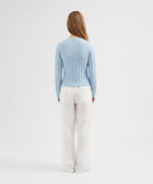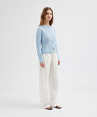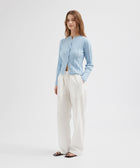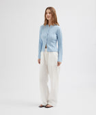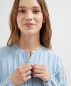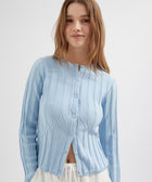 Soft yet structured. This 100% cotton knit cardigan features a ribbed pattern for added texture, finished with a classic crew neckline and button-down front. Available in white and blue.